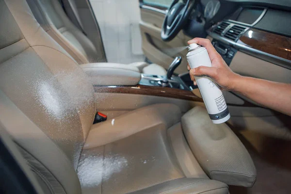 - For leather seats, apply a leather cleaner. Pre-treat the area with a conditioner to protect the material before using the cleaner.